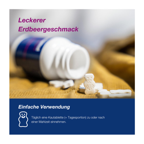 Täglich 1 Kautablette (= Tagesportion) zu oder nach einer Mahlzeit einnehmen.