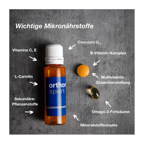 Orthomol Sport in der Darreichungsform Trinkfläschchen/Tablette/Kapsel ist lactose- und glutenfrei.
