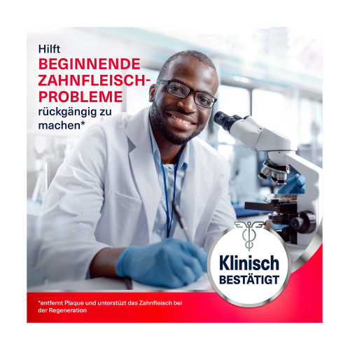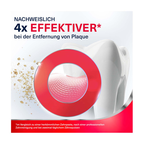 * 4x effektiver als eine herkömmliche Zahnpasta bei der Entfernung von Plaque, der Hauptursache von Zahnfleischproblemen. Nach einer professionellen Zahnreinigung und bei 2x täglichem Zähneputzen.
