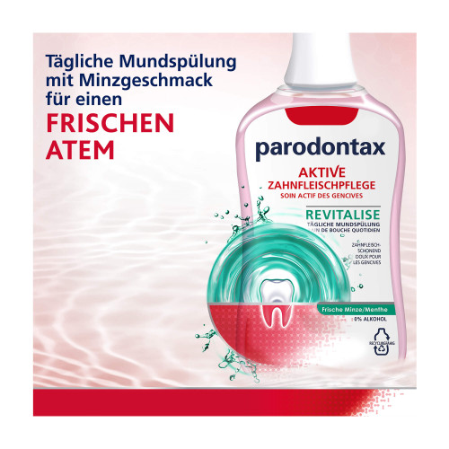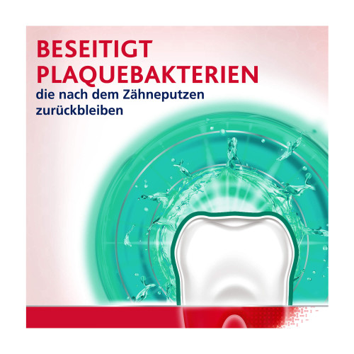 Die alkoholfreie Mundspülung hilft unterstützend zum Zähne Putzen, Bakterien zwischen den Zähnen und am Zahnfleischrand zu beseitigen. Die Mundspülung trägt dazu bei, Zahnfleischproblemen vorzubeugen. Diese entstehen durch die Ansammelung von Plaquebakterien und können unbehandelt Ihre Mundgesundheit beeinflussen. Der frische Minzgeschmack unterstützt einen frischen Atem. Zusätzlich enthält die Mundspülung Fluorid, dass die Zähne vor Karies schützt und stärkt.