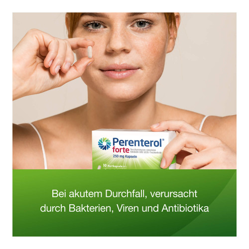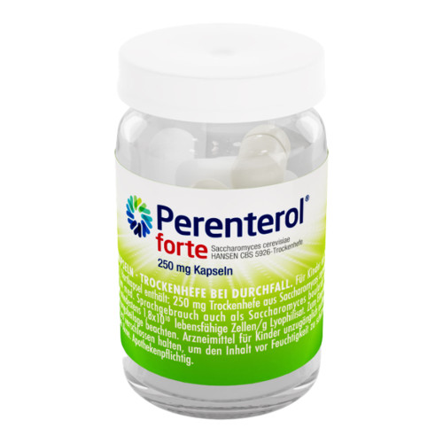 Perenterol forte 250 mg Kapseln. Wirkstoff: Trockenhefe aus Saccharomyces cerevisiae HANSEN CBS 5926 (Synonym: Saccharomyces boulardii). Anwendungsgebiete: Zur symptomatischen Behandlung akuter Diarrhöen. Zur Vorbeugung und symptomatischen Behandlung der Beschwerden von Reisedurchfällen sowie Durchfällen unter Sondenernährung. Zur begleitenden Behandlung bei länger bestehenden Formen der Akne. Für Erwachsene und Kinder ab 2 Jahren. Warnhinweis: Enthält Lactose.
