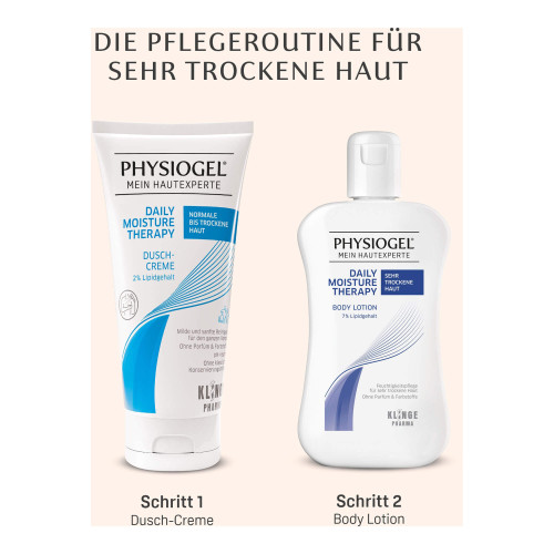 Die PHYSIOGEL® Daily Moisture Therapy sehr trockene Haut Body Lotion imitiert die Struktur der Haut. Nach dem Vorbild der gesunden, widerstandsfähigen Haut werden Inhaltsstoffe verwendet, die diese nachahmen, um die Haut mit Feuchtigkeit zu versorgen und nachhaltig zu reparieren und regenerieren.
