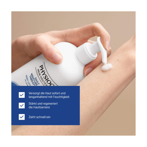 Die PHYSIOGEL® Daily Moisture Therapy sehr trockene Haut Body Lotion imitiert die Struktur der Haut. Nach dem Vorbild der gesunden, widerstandsfähigen Haut werden Inhaltsstoffe verwendet, die diese nachahmen, um die Haut mit Feuchtigkeit zu versorgen und nachhaltig zu reparieren und regenerieren.