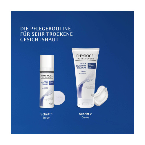 Das PHYSIOGEL® Daily Moisture Therapy Serum für sehr trockene Haut eignet sich vor allem im Gesicht und Dekolletébereich. Mit dem dreifachen Pflegeeffekt spendet es intensive Feuchtigkeit, regeneriert und repariert die Haut.