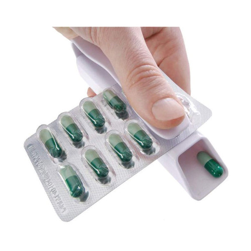 Der weiße Pillenausdrücker ist ein praktisches Hilfsmittel zum einfachen Entnehmen von Tabletten aus Blisterverpackungen.