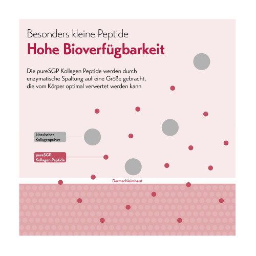 pureSGP® Kollagen Peptide ist gut verträglich und kann täglich verzehrt werden. Das Pulver ist gluten-, fruktose- und laktosefrei.