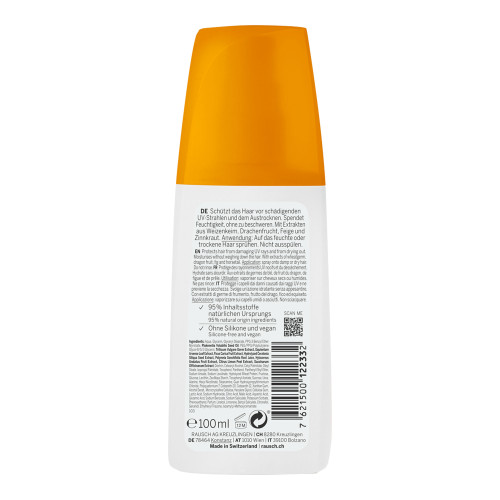Der Rundumschutz für sonnenexponiertes Haar stammt aus der Schweiz. Hier haben die RAUSCH Expertinnen die leichte und silikonfreie Rezeptur entwickelt, welche zu 95 % aus Inhaltsstoffen natürlichen Ursprungs besteht. Darunter Weizenprotein und hochwertige Extrakte aus Weizenkeimen, Drachenfrucht, Feige, Zinnkraut aus Wildsammlung sowie Inca-Inchi-Öl. Dieses kostbare Öl wird von der indigenen Bevölkerung Perus bereits seit Jahrtausenden als Beauty-Elixier verwendet und gilt als eines der reichhaltigsten und besten Öle der Welt.