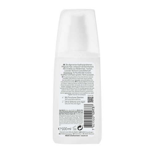 Entwickelt in der Schweiz punktet die Spezialpflege mit jeder Menge Power aus der Natur. Die milde Formel beinhaltet 97 % Inhaltsstoffe natürlichen Ursprungs, darunter Schweizer Birkensaft aus Wildsammlung sowie wertvolle Extrakte aus Weidenrinde, Rosmarin, Lavendel sowie Thymian. Der charakteristisch-herbe Duft des veganen und silikonfreien Sprays erinnert an einen aromatischen Kräutergarten.