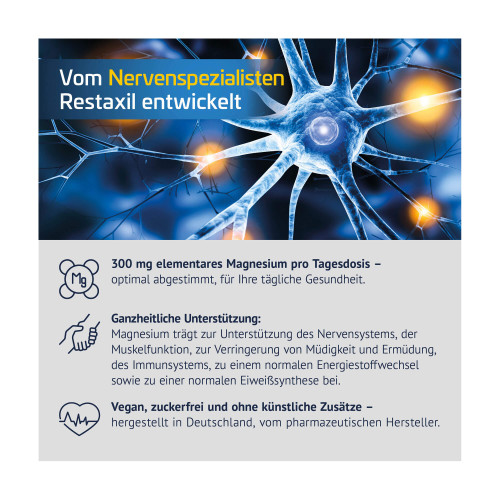 - Personen, die ihre normale Muskelfunktion und psychische Balance unterstützen möchten – Restaxil® Magnesium unterstützt die normale Muskelfunktion und trägt zur Reduktion von Müdigkeit und Erschöpfung bei.