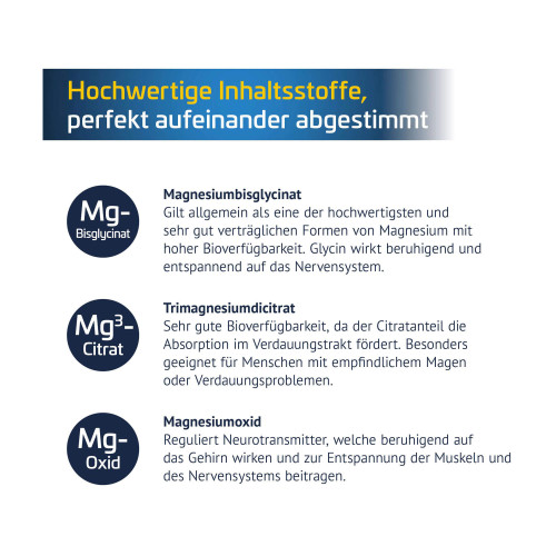 Restaxil® Magnesium enthält eine speziell abgestimmte Kombination aus drei hochwertigen Magnesiumverbindungen: