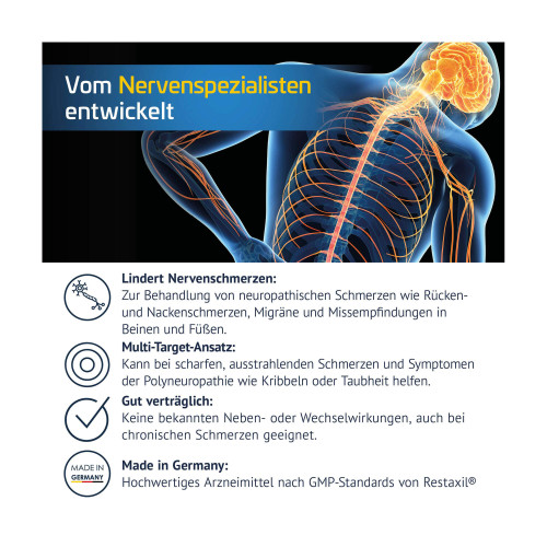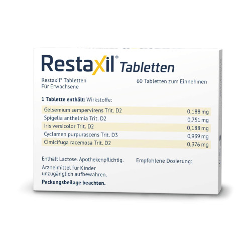 Restaxil Tabletten. Anwendungsgebiete: Für Erwachsene. Homöopathisches Arzneimittel bei Schmerzen. Die Anwendungsgebiete leiten sich von den homöopathischen Arzneimittelbildern ab. Dazu gehören: Neuralgien (Nervenschmerzen), Kopfschmerzen und Migräne. Warnhinweis: Enthält Lactose.