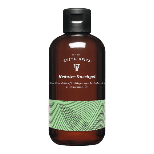 Retterspitz Kräuter Duschgel basiert auf milder physiologischer Kochsalzlösung und hat einen der Haut entsprechenden pH-Wert. Dadurch werden der Körper und der Intimbereich sanft gereinigt, aber nicht gereizt.