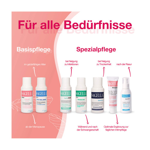 Die Sagella poligyn – Comfort 50 Plus bietet umfangreiche Pflege für den Intimbereich von Frauen ab Beginn der Wechseljahre. Kamillenextrakt und Bisabolol entfalten eine beruhigende und wundheilungsfördernde Wirkung und hinterlassen bei der Intimpflege ein angenehm frisches Gefühl. Beschwerden wie Brennen oder Juckreiz in Verbindung mit Trockenheit werden dadurch schonend gelindert.