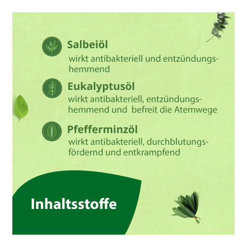 Wirkstoffe aus Salbei, Fenchel, Nelke, Pfefferminze, Thymian; 1450 ppm Fluorid in Form von Natriumfluorid und Dicalciumphosphat als Putzkörper.