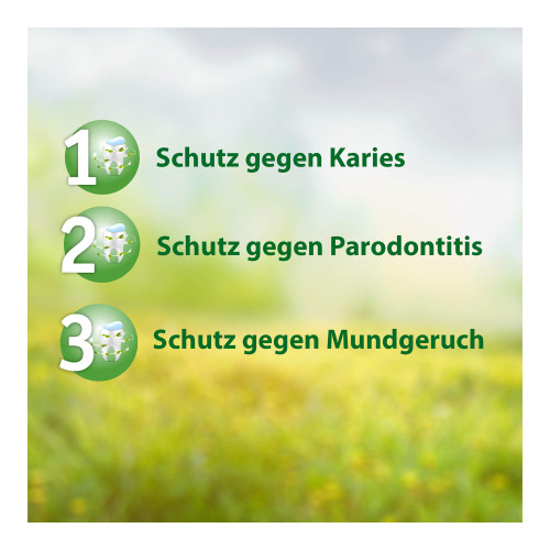 Die spezielle Kombination natürlicher Inhaltsstoffe und ätherischer Öle aus Minze, Salbei, Fenchel sowie den natürlichen Bestandteilen von Thymian, Nelke und Kamille können helfen, Entzündungen im Mund vorzubeugen. Leichte Infektionen können damit wirkungsvoll verhindert und die Gesunderhaltung von Zähnen und Zahnfleisch effektiv gefördert werden. Nicht zuletzt unterstützt dies, neben dem täglichen Zähneputzen, den Zahnerhalt und damit die langfristige Aufrechterhaltung einer gesunden Mundflora.
