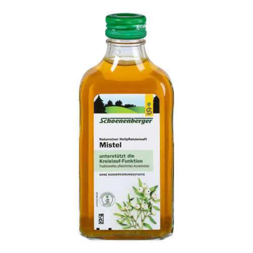 Schoenenberger Naturreiner Heilpflanzensaft Mistel. Wirkstoff: Viscum album L. Anwendungsgebiete: Traditionell angewendet zur Unterstützung der Kreislauffunktion.
