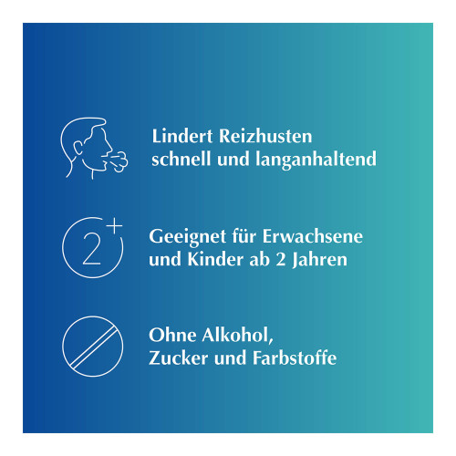 . Wirkstoff: Pentoxyverincitrat. Anwendungsgebiete: Zur Anwendung bei Kindern ab 2 Jahren und Erwachsenen. Arzneimittel zur symptomatischen Behandlung des Reizhustens (Antitussivum). Warnhinweise: Enthält Methyl- und Propyl-4-hydroxybenzoat, Sorbitol, Propylenglycol, Benzylalkohol und Natrium.