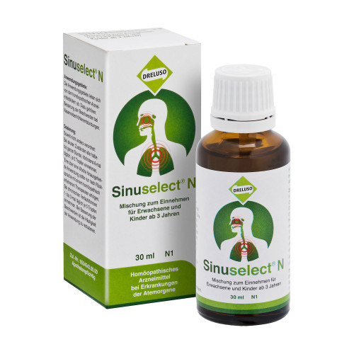 Sinuselect N, Mischung flüssiger Verdünnungen zum Einnehmen. Anwendungsgebiete: Die Anwendungsgebiete leiten sich von den homöopathischen Arzneimittelbildern ab. Dazu gehören: Besserung der Beschwerden bei Nasennebenhöhlenentzündungen. Warnhinweis: Enthält 31 Vol.-% Alkohol!