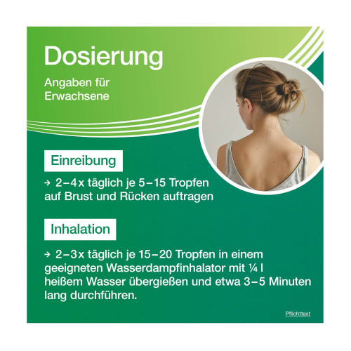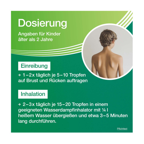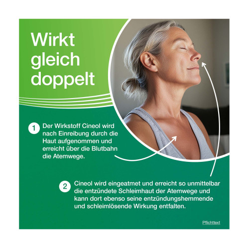 - Menthol/Campher/Cineol: Bei Kindern unter 2 Jahren nicht an oder in der unmittelbaren Nähe der Atmungsorgane anwenden; Gefahr eines Kehlkopfkrampfes.