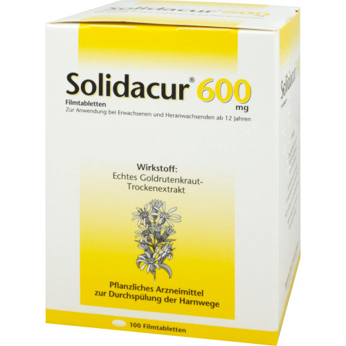 SOLIDACUR 600 mg Filmtabletten. Wirkstoff: Solidago virgaurea L. Anwendungsgebiete: Durchspülung der Harnwege, z.B. bei: Entzündungen der Harnwege; Vorbeugung gegen Nierensteine; Vorbeugung gegen Grießbildung in den Harnwegen.