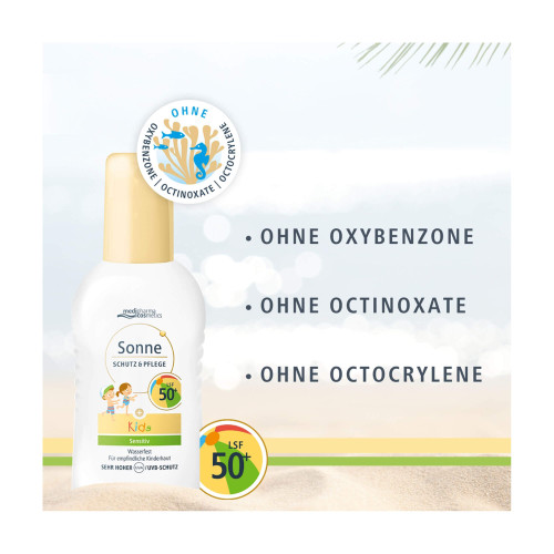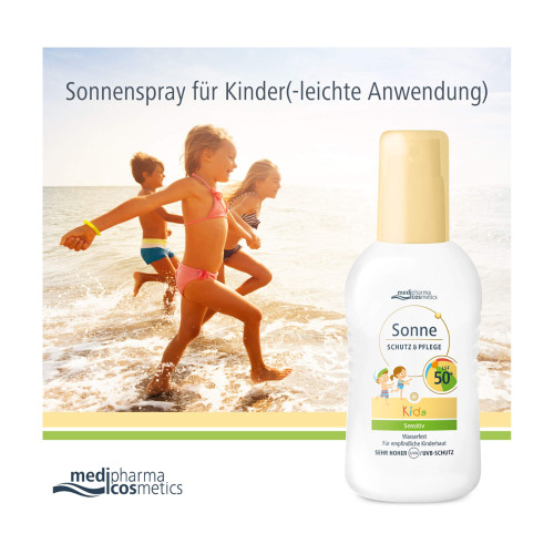 Das wasserfeste Sonne Schutz & Pflege KIDS LSF 50+ Pumpspray von medipharma cosmetics wurde speziell für empfindliche Kinderhaut entwickelt. Die sanfte Sensitiv-Formel bietet einen sehr hohen und zuverlässigen Sonnenschutz mit Lichtschutzfaktor 50+, der sich besonders für zarte Kinderhaut eignet – sowohl im Gesicht als auch am Körper. Die wasserfeste Formel hält auch beim Planschen und Spielen stand – dennoch sollte der Schutz regelmäßig erneuert werden, besonders nach dem Baden, Abtrocknen oder Schwitzen. Dank der praktischen Sprühfunktion ist die Anwendung kinderleicht – ob im Schwimmbad, am Meer oder beim Spielen auf der Wiese.