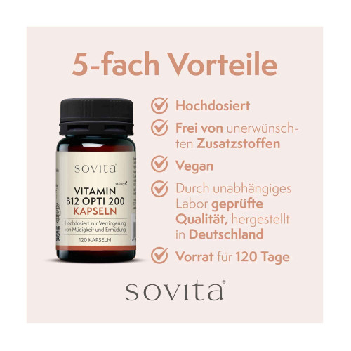 Die sovita Vitamin B12 Opti 200 Kapseln bieten Ihnen folgende Vorteile: