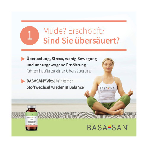 Nehmen Sie BASASAN® Vital Kapseln regelmäßig ein, um eine Remineralisierung und Entsäuerung des Organismus zu erreichen und Ihren Stoff wechsel in Balance zu halten.
