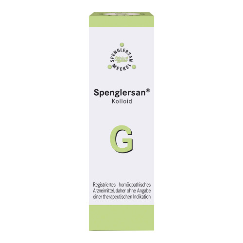 Spenglersan Kolloid G, Mischung. Anwendungsgebiete: Registriertes homöopathisches Arzneimittel, daher ohne Angabe einer therapeutischen Indikation.