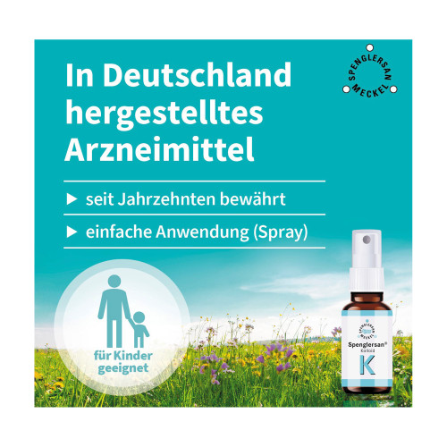 Spenglersan Kolloid K Mischung. Anwendungsgebiete: Registriertes homöopathisches Arzneimittel, daher ohne Angabe einer therapeutischen Indikation.