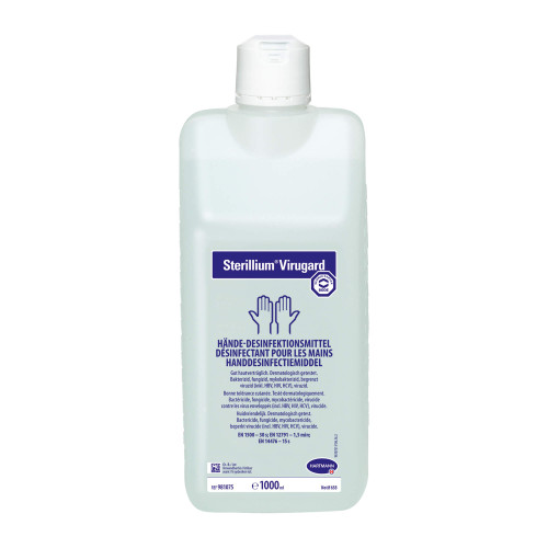 Sterillium Virugard, Lösung. Wirkstoff: Ethanol (99 %) 95,0 g. Anwendungsgebiete: Hygienische und chirurgische Händedesinfektion.