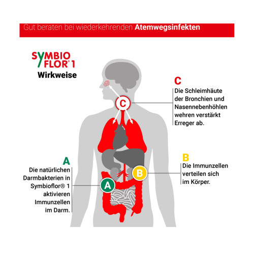 Symbioflor 1 Tropfen zum Einnehmen, Suspension. Wirkstoff: Enterococcus faecalis-Bakterien. Anwendungsgebiete: Zur Verminderung der Rezidivrate bei wiederkehrenden Infektionen der oberen und unteren Atemwege, besonders bei Entzündungen der Nebenhöhlen (Sinusitis) und der Bronchien (Bronchitis). Warnhinweise: Enthält Lactose und Glucose.