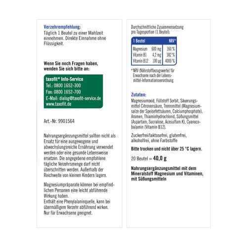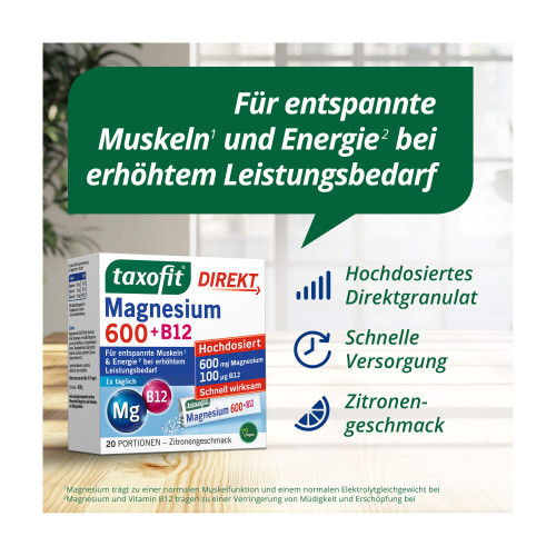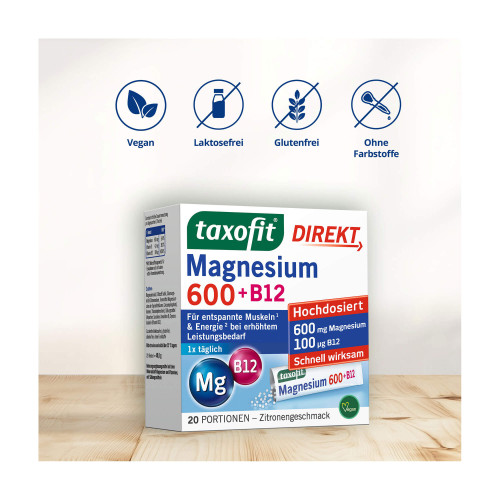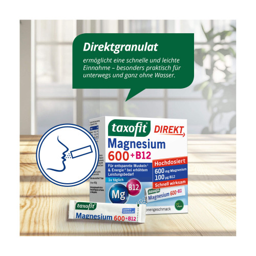 Taxofit Magnesium 600 + B12 Direkt-Granulat 20 St