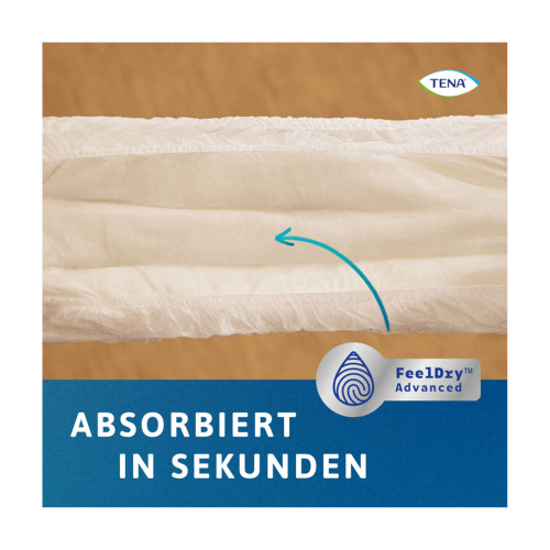 Zuverlässige Hygiene-Produkte gewährleisten bei Inkontinenz ein Höchstmaß an Sicherheit und Diskretion. Tena ProSkin Pants Normal wurden speziell für sicheren Schutz vor Auslaufen und Gerüchen entwickelt. Die innovative FeelDry Technologie sorgt dank ultra-schnellem Aufsaugen für lang anhaltende Trockenheit und leitet auch größere Mengen an Urin in den saugfähigen Kern: Die Flüssigkeit wird sicher aufgenommen und bleibt im Saugkern eingeschlossen. Leistungsfähige Auslaufbarrieren garantieren zusätzlichen Schutz. Die neuen Tena ProSkin Pants absorbieren Ausläufe in Sekunden*, die Haut bleibt länger trocken und wird noch besser geschützt*. Für Frische und angenehmen Tragekomfort sorgen 100% atmungsaktive Materialien. Sie lassen die Luft zirkulieren und halten so die Haut trocken und gesund.