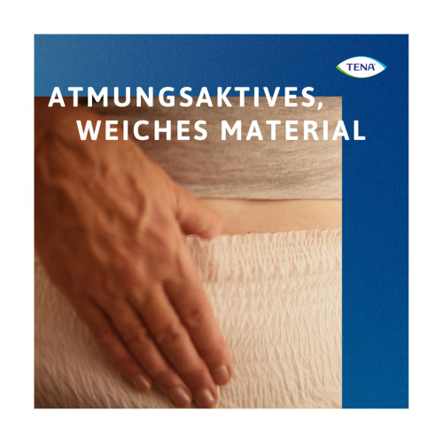 Tena ProSkin Pants Normal für mittelschwere Blasenschwäche bzw. Inkontinenz. Die saugfähigen Materialien sind dort konzentriert, wo sie am meisten benötigt werden. Dadurch sind die Einweghosen mit einem lang anhaltenden Schutz, absorbieren die Flüssigkeit schneller und halten länger trocken. Die Pants sind ebenso dehnbar wie Unterwäsche und passen sich den Körperkonturen an. Die farbigen Fäden an der Taille erleichtern die Erkennbarkeit der Saugstärke und markieren die Rückseite des Produkts. Die körpernahe Passform verhindert ein Verrutschen der verstärkten Schutzzonen und bietet verlässlichen Schutz vor Auslaufen – im Sitzen, Stehen und Liegen.