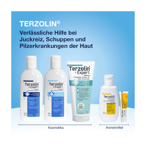 Besonders empfohlen in Kombination mit der Terzolin® Expert Spülung (PZN 19074142) Pflegender Schutz für Haar und Kopfhaut.