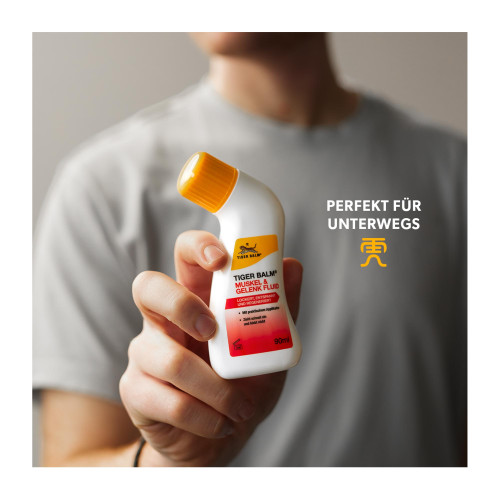 Arbeiten am Schreibtisch ohne ausreichende Bewegung, lange Reisen und Stress können zu Verspannungen im Muskel- und Gelenkbereich führen. Das Tiger Balm Muskel & Gelenk Fluid ist eine pflegende Einreibung. Die Haut wird gepflegt und dadurch regeneriert. Durch die Anwendung und das Einmassieren mit dem praktischen Applikator werden die verspannten Muskeln gelockert. Die ausgewählten Inhaltsstoffe des Fluids können die Durchblutung anregen und einen angenehmen Wärmeeffekt erzeugen. Beanspruchte Muskeln werden dadurch gelockert und entspannt. Das Tiger Balm Muskel & Gelenk Fluid zieht schnell ein und klebt nicht. Das Fluid ist daher ideal vor und nach sportlichen Aktivitäten, zu Hause, im Büro am Computer oder bei längeren Reisen.