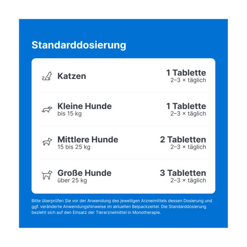 Mittelerer Hund (15-25 kg): 2-3 mal täglich je 2 Tabletten