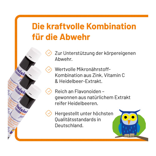 Zink und Vitamin C tragen zu einer normalen Funktion des Immunsystems bei. Vitamin C trägt zur Verringerung von Müdikeit und Ermüdung bei sowie zu einer normalen Funktion des Immunsystems während und nach intensiver körperlicher Betätigung.