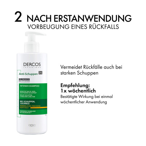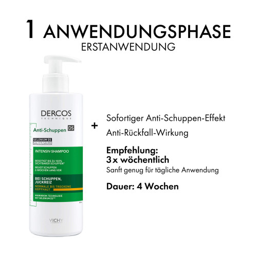 Das Vichy DERCOS Anti-Schuppen Shampoo für trockenes Haar wirkt den Ursachen der Schuppenbildung auf der Kopfhaut entgegen. Es fördert das Gleichgewicht des Kopfhautmikrobioms und unterstützt die Funktion der Hautschutzbarriere. Schuppen werden entfernt und einer erneuten Schuppenbildung entgegengewirkt. Die effektive Wirkstoffkombination des Vichy Anti-Schuppen Shampoos ist auf die Bedürfnisse von trockenem Haar abgestimmt. Selendisulfid beugt Schuppenbildung vor und wirkt juckreizmildernd, Salicylsäure entfernt Schuppen effektiv, Vitamin-E und Cohesyl™ fördern das Gleichgewicht des Mikrobioms. Speziell entwickeltes Anti-Schuppen Shampoo für trockene, juckende Kopfhaut.