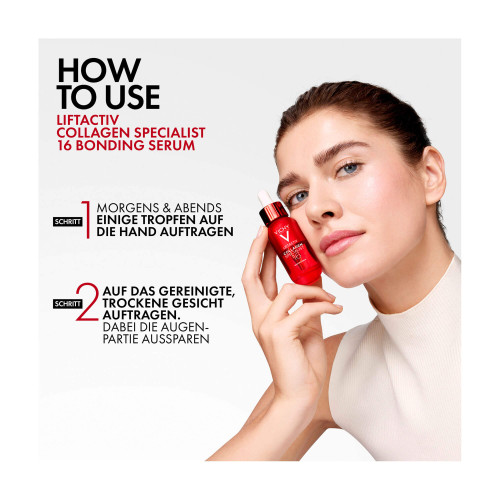 Collagen Specialist 16 ist die erste Produktlinie mit exklusiver Co-Bonding Technologie (Rhamnose + Kollagen Peptide + Maitake). Ein Serum – 16 Anti-Age Wirkungen: gemilderte Falten, gemilderte feine Linien, verfeinerte Poren, ebenmäßigeres Hautbild, prallere Haut, revitalisiertere Haut, definiertere Konturen, gefestigtere Haut, gestärkte Hautschutzbarriere, geschmeidigere Haut, verbesserte Hautelastizität, verbesserte Ausstrahlung, Lifting-Effekt, hydratisiertere Haut, regneriertere Haut, jugendlicheres Hautbild.