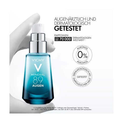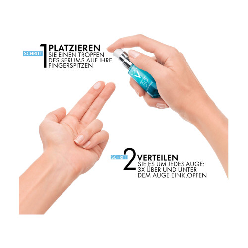 Schritt 2: Gib morgens und abends jeweils zwei bis drei Tropfen des Vichy MINÉRAL 89 Augenserums auf deine Fingerspitzen.