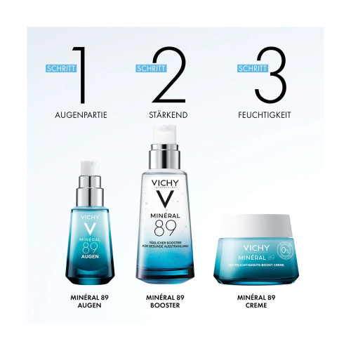 Die MINÉRAL 89 Hyaluron-Boost mit Sofort-Effekt, wurde speziell formuliert, um deiner zarten Haut die optimale Feuchtigkeitsversorgung zu bieten und gleichzeitig Anzeichen von Müdigkeit zu mildern. Dank ihrer Pflegeformel mit natürlicher Hyaluronsäure, Vulkanwasser aus Vichy und belebendem Koffein, bindet das Gel-Creme-Serum die Feuchtigkeit tief in der Haut und sorgt so für ein pralleres, glatteres Erscheinungsbild.