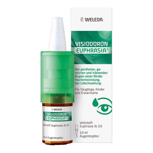 Visiodoron Euphrasia Augentropfen. Wirkstoff: Euphrasia 3c D3. Anwendungsgebiete: Gemäß der anthroposophischen Menschen- und Naturerkenntnis gehören zu den Anwendungsgebieten: Katarrhalische Entzündungen am Auge, die mit vermehrter Tränenabsonderung einhergehen; Lidödeme, vor allem auf allergischer Grundlage.
