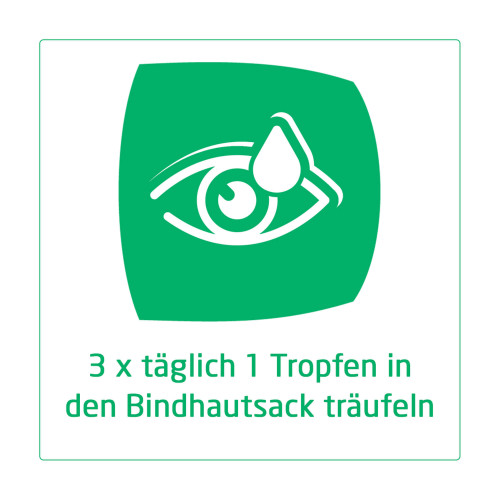 3 mal täglich 1 Tropfen in den Bindehautsack träufeln.