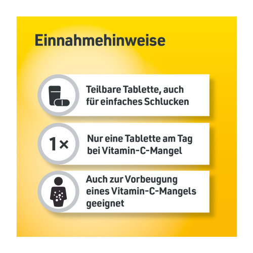 - Zur Vorbeugung eines Vitamin-C-Mangels, wenn die ausreichende Zufuhr durch die Ernährung nicht gesichert ist.