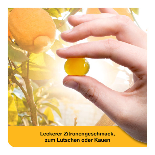 Süßungsmittel: Xylit, Sorbit; Sonnenblumenöl, Gelatine (Rind), Verdickungsmittel: Gummi arabicum; Zitronenaroma, Säureregulator: Natriumcitrate; Cholecalciferol (Vitamin D3), Antioxidationsmittel: Äpfelsäure; Emulgator: Lecithine; Farbstoff: Carotin.