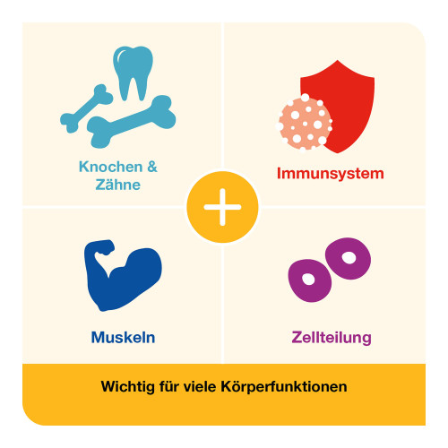 Zur Unterstützung eines normalen Immunsystems sowie für den Erhalt normaler Knochen, Zähne und Muskelfunktion.