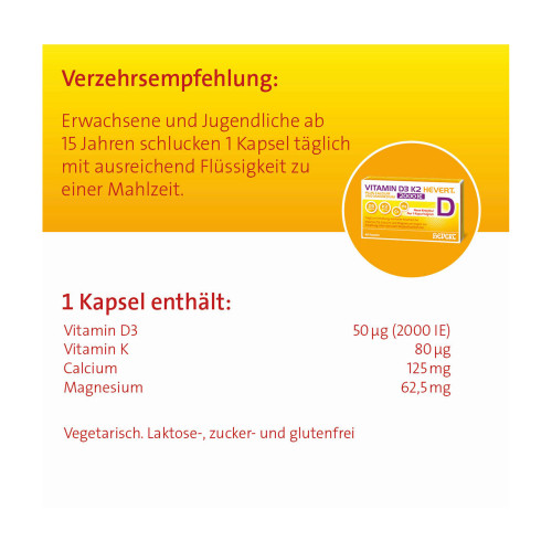 Vitamin D3 K2 Hevert+ Calcium und Magnesium 2000 IE Kapseln 120 St