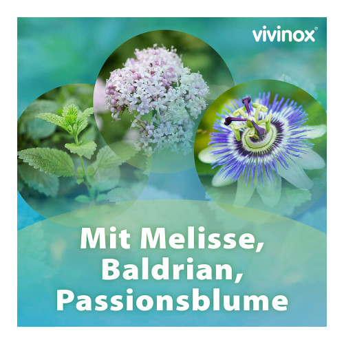Vivinox® Nervenruhe Beruhigungsdragees Baldrian + Melisse + Passionsblume. Anwendungsgebiete: Bei Unruhezuständen und nervös bedingten Einschlafstörungen. Warnhinweise: Arzneimittel für Kinder unzugänglich aufbewahren. Warnhinweis: Enthält u.a. Glucose und Sucrose (Zucker).