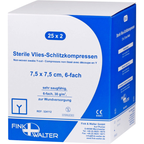 Vlies-Schlitzkompressen steril 7,5 x 7,5 cm 6–fach 25X2 St